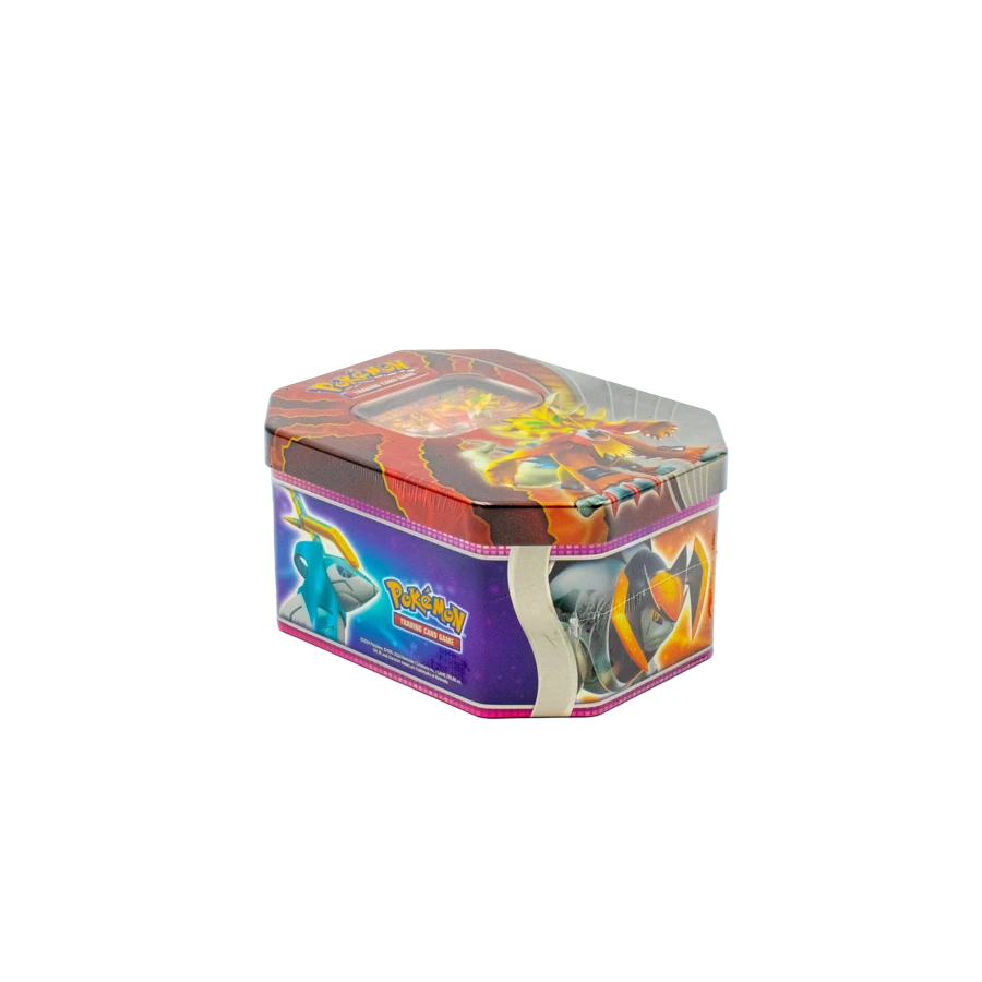 The Pokemon Trading Card Game Paradox Destinies Fall Ex Tin-Assortment features a collection of tins focused on Pokemon with intertwined destinies related to Paradox Pokemon. Each tin in this assortment showcases different powerful Pokemon ex that have connections to the time-bending Paradox Pokemon introduced in the Scarlet & Violet era. The tins come in various designs, each highlighting a different featured Pokemon ex with dynamic artwork that captures their powerful presence.